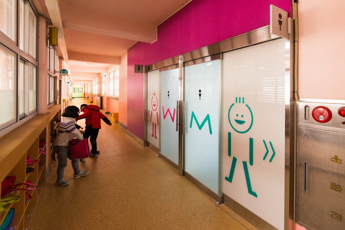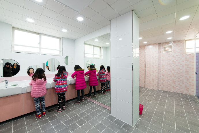 2015년 10월부터 학생들과 선생님들의 참여 속에 워크숍을 진행하여 의견 등을 수렴한 후, 학교 운영진과의 협의를 통해 운영의 편의와 분위기 향상을 위한 디자인을 제안하였다. 한정된 예산과 재료 선정 등에 대한 한계로 인하여 설계 과정에서 의도한 마감이나 색상 등이 모두 구현되지 못하였지만, 본관 화장실의 주 이용자인 저학년 학생들이 보다 화장실을 친숙하게 느낄 수 있도록 의도하였다.