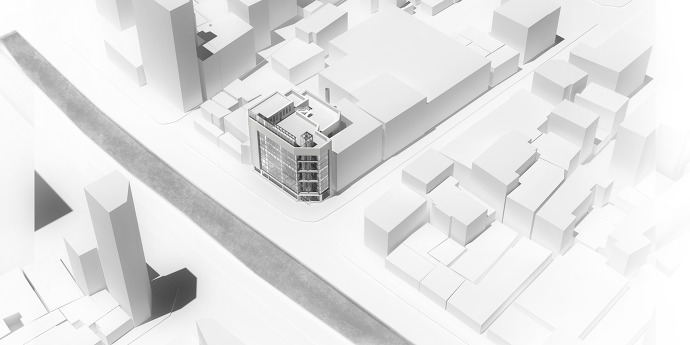 기존 건물은 1963년 완공된 서울은행 관수교지점 (김정수 설계)으로, 1980년대 외관 리모델링과 5층의 증축이 이루어진 콘크리트 라멘조 건물입니다. 현재의 모습은 1980년대에 흔하게 지어졌던 붉은 세라믹 타일의 대칭형 입면으로 이루어져 있습니다.