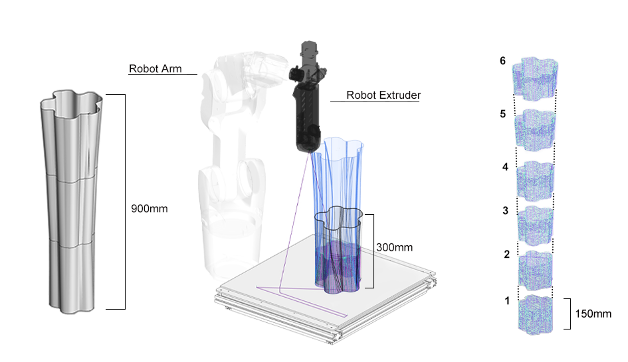 One of the industries that produces a lot of wastes is the building sector, so research is being actively carried out globally on material circulation to reduce waste and accomplish the target of carbon neutrality in order to prevent the adverse effects of this. The purpose of this study is to experiment 3D printed prototypes utilizing bioplastics derived from seaweed wastes that have biodegradable ingredients. Rapid design, production, and experimentation made possible by 3D printing result in savings in costs, time, and resources. It is also anticipated that fewer waste byproducts will be produced throughout the prototying process. The setting values of 3D printing and the mixture variations and their ratios are guided from many attempts of tests to blend a seaweed-based compound with bioplastics. The optimized materials and settings are used to manufacture mock-up models of a column design, and the architectural integration of formwork and design components can be further investigated, starting from this basic 3D printing experiment.